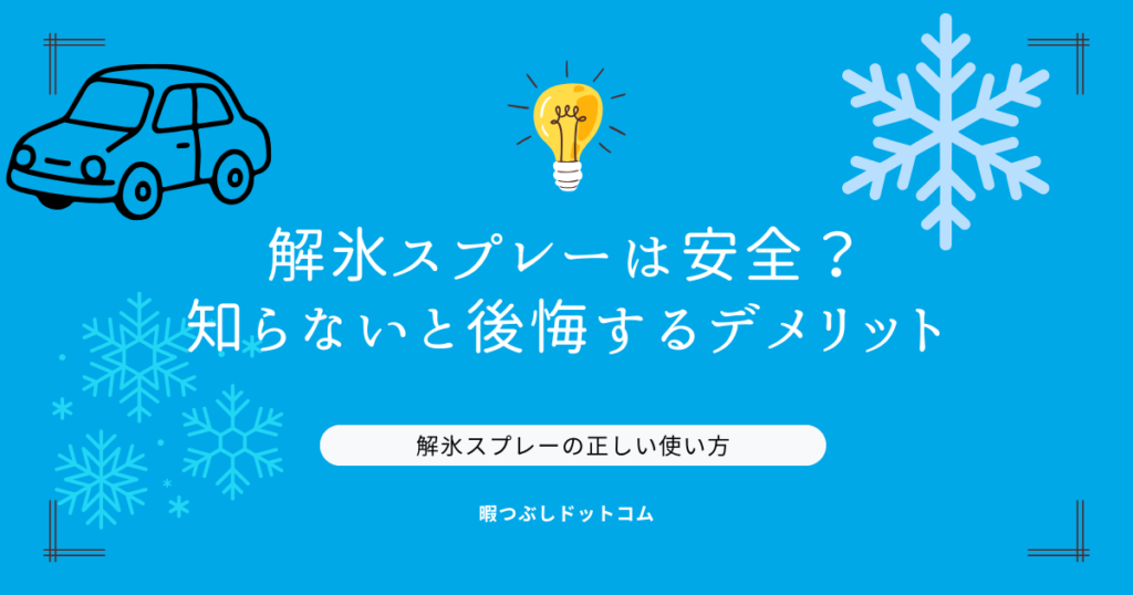 冬の朝、フロントガラスが凍っていて出発できない──そんなときに便利なのが解氷スプレーです。シュッと吹きかけるだけで氷が溶けるため、寒冷地だけでなく都市部のドライバーにも広く使われています。 しかし一方で、「解氷スプレーは本当に安全なの?」「...
